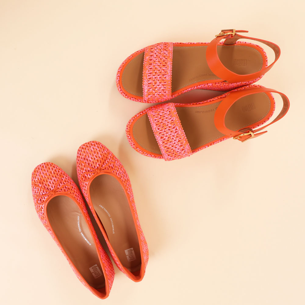 Fitflop Ballerina MARY JANE RAFFIA LEATHER- satsuma/pink perfect mix