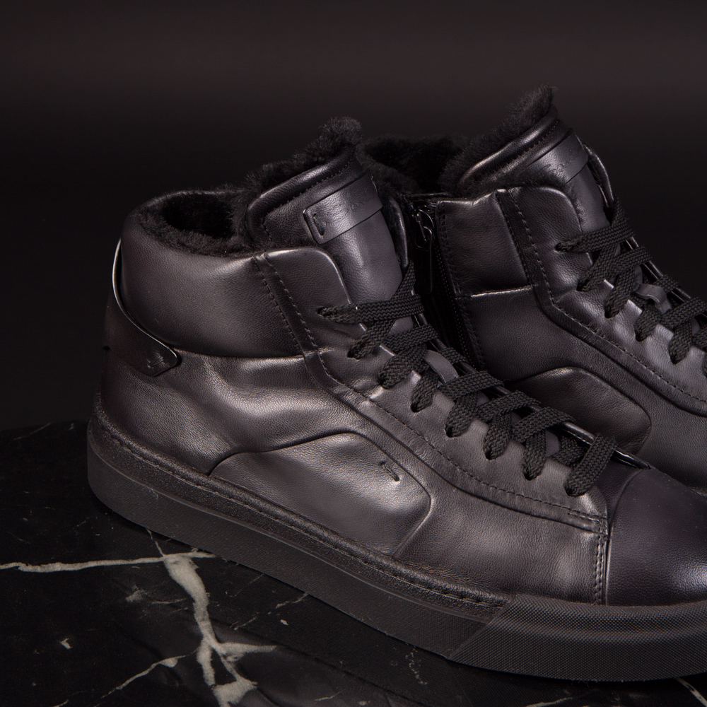 Santoni Herren-Sneaker gefüttert DOUBLE BUCKLE NERO- schwarz